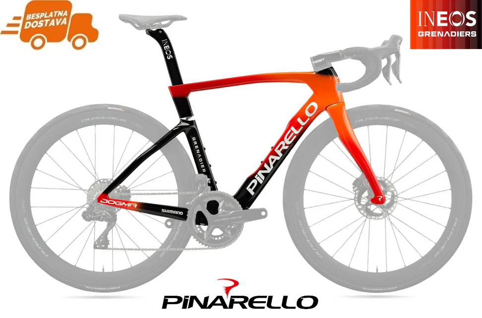 Dobrodošli u Pinarello svijet natjecateljskih, vrhunskih i najboljih cestovnih bicikala na svijetu. Pinarello Dogma je Ferrari u svijetu biciklizma, to je bicikl koji je osvojio 7 od posljenjih 11 Tour de France natjecanja što dovoljno govori o kakvim je biciklima riječ. Pinarello Dogma je remek djelo inženjerstva stvoren za brze i žestoke cestovne vožnje, namijenjen biciklistima koji žele biti najbrži, a njegov inovativan dizajn, aerodinamičnost i izvrsna geometrija omogućuju da Pinarello Dogma briljira u svim segmentima, neovisno jeste li na usponu, spustu ili dugačkoj ravnici!