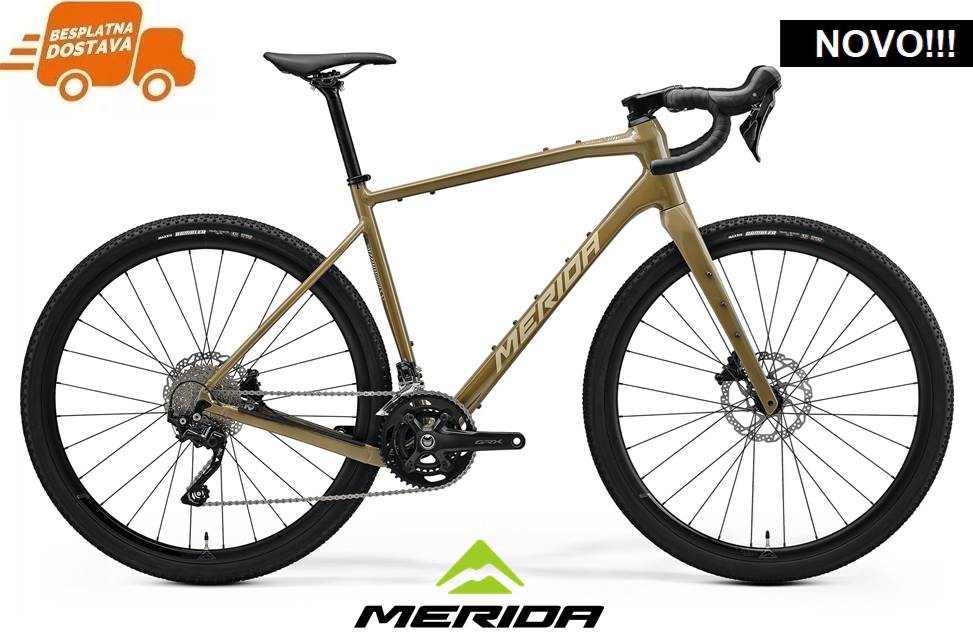 Silex 400 je brz, udoban i svestran gravel bicikl izrađen od izuzetno laganog, ali istovremeno i vrlo čvrstog aluminjskog okvira i karbonske vilice. Dolazi sa kvalitetnim Shimano GRX RX400 pogonskim sustavom od 2x10 brzina te Shimano GRX 410 hidrauličnim disk kočnicama za pouzdano zaustavljanje u svim nepredvidivim situacijama. Integrirani bužiri, mogućnost ugradnje gume širina do 45mm, te velik broj pričvrsnih mjesta za nosače tereta/prtljage/blatobrana samo su šlag na torti ove biciklističke poslastice. Za što bolju udobnost i odlično prianjanje brinu se brze i odlično prianjajuće Maxxis Rambler 700x45C gravel gume montirane na čvrste i lagane MERIDA EXPERT SL III aluminijske kotače.