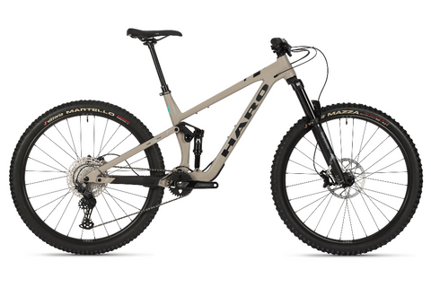 Osnovni model HARO full suspension bicikala. Ovaj okretan, brz i fantastican 29'' (27.5'' u S velicini) MTB bicikl izrađen je od laganog, ali izuzetno izdržljivog aluminijskog okvira. Dolazi sa Marzocchi Bomber Z2 zračnom vilicom od 150 mm hoda te Marzocchi Inline R stražnjim amortizerom sa 140mm suspenzije. Pogonski sustav čine Shimano Deore 1x12 pogonske komponente, za pouzdano zaustavljanje brinu se Tektro Gemini SL 4-klipne hidraulične disk kočnice, a za sigurnije spuštanje tu je i dropper cijev sjedala. Osim toga, ovaj bicikl dolazi sa robusnim i dvostruko ojacanim WTB ST 30 aluminijskim kotacima u kombinaciji sa 29''x 2.35 gumama (27.5 u S velicini).