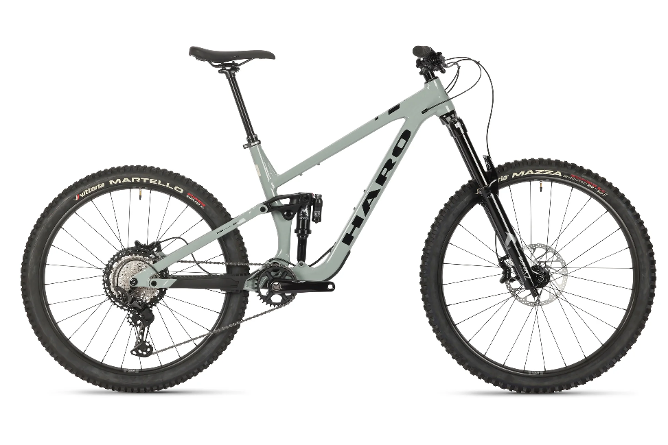 | Frame | Haro Greer alloy full-suspension frame, 1-1/8" - 1-1/5" tapered head tube, 148mm Boost OLD, UDH derailleur hanger |