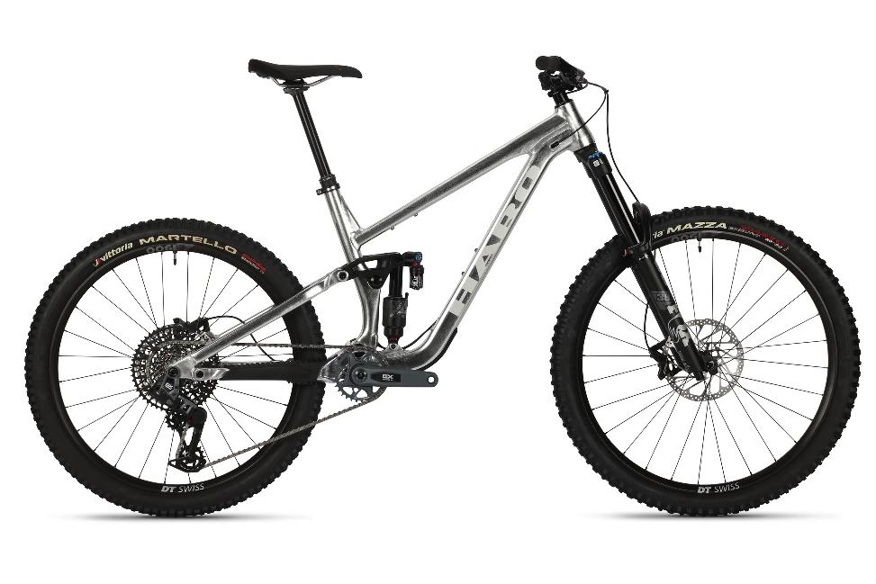 | Frame | Haro Greer alloy full-suspension frame with raw anodized finish, 1-1/8" - 1-1/5" tapered head tube, 148mm Boost OLD, UDH derailleur hanger |
