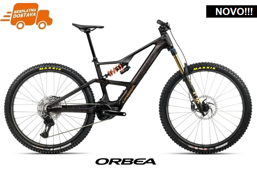 Ovaj model dolazi sa vrlo elegantnim i čvrstim karbonskim okvirom sa integriranim bužirima, Fox 36 Float Factory Kashima prednjom vilicom sa 160 mm hoda, FOX DHX Factory stražnjom suspenzijom također sa 150 mm hoda, zatim vrhunskim i pouzdanim SHIMANO EP801 RS Gen2 motorom smještenim unutar okvira na središnjoj pogonskoj osovini te Orbea posebno optimiranom baterijom kapaciteta 630 Wh (mogućnost kupnje dodatne 'range extender' baterije od 210 Wh na nosač bidona). Pogonski sustav čine Shimano XTR Di2 elektronicke komponente sa 1x12 prijenosom, a Shimano XTR M9200 hidraulične disk kočnice brinu se za pouzdano zaustavljanje u svim nepredvidivim situacijama. Za što bolju udobnost i upravljivost brinu se čvrsti karbonski Oquo Mountain Control MC32LTD Tubeless Ready kotači sa obručima unutarnje širine 30 mm, te udobno Fizik Terra sjedalo i ugrađena FOX Transfer Factory Kashima dropper cijev sjedala, dok se za odlično prianjanje brinu se vrhunske Maxxis Assegai 2.50" i Maxxis Minion DHR II 2.40" gume.